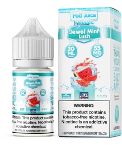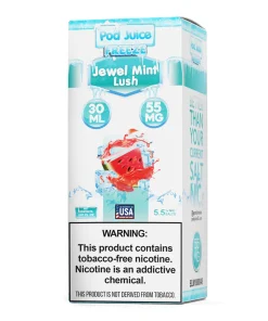 Indulge in the sensational blend of sweet watermelon and a cooling blast of icy freshness with Jewel Mint Lush Freeze 30ml – Pod Juice Salt. This premium e-liquid from Pod Juice is designed to captivate your taste buds and provide an invigorating vaping experience like no other.